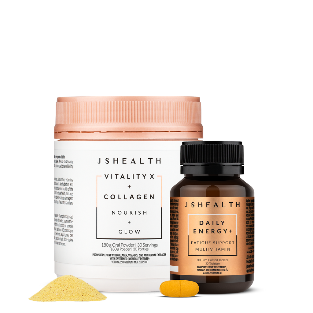 Begin your mornings on a dynamic note with Jess’ Morning Ritual Perfect Pairing — a carefully crafted duo designed to fuel your day and enhance your inner beauty. Combining two powerhouse products, Daily Energy and Vitality X Collagen, this set is thoughtfully formulated to nurture your energy, stamina, and vitality, while giving your skin and hair the attention they deserve. Whether you’re chasing professional goals or living your best life, this pairing is your ultimate companion for a productive and beautiful day.